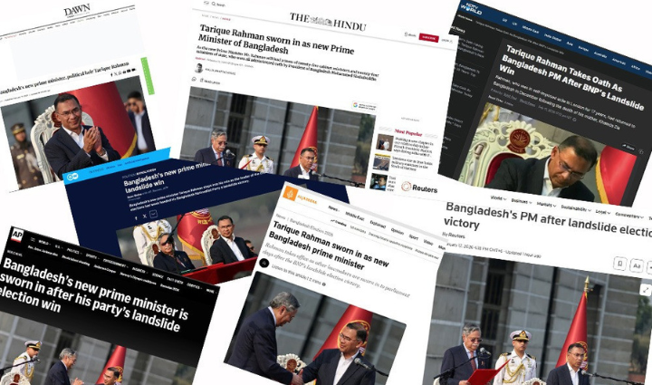 মঙ্গলবার (১৭ ফেব্রুয়ারি) প্রধানমন্ত্রী হিসেবে শপথ নেন তারেক রহমান ও তার মন্ত্রিসভার সদস্যরা। তার শপথগ্রহণের খবর গুরুত্ব দিয়ে প্রকাশ করেছে বিভিন্ন আন্তর্জাতিক গণমাধ্যম।