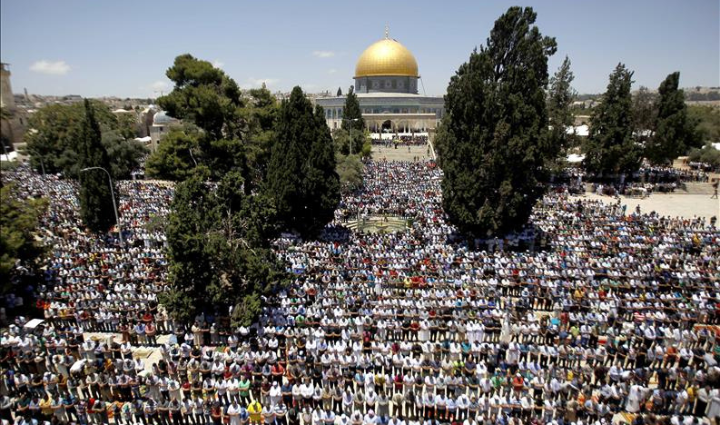 দীর্ঘ বিরতির পর ফিলিস্তিনের অধিকৃত পূর্ব জেরুজালেমের আল-আকসা মসজিদে ১ লাখের বেশি মুসল্লি জুমার নামাজ আদায় করেছেন। যুক্তরাষ্ট্র ও ইরানের মধ্যে দুই সপ্তাহের যুদ্ধবিরতি ঘোষণার পর বৃহস্পতিবার পবিত্র এই স্থানটি খুলে দেওয়া হয়। শুক্রবার জুমার নামাজে মুসল্লিদের ঢল নামে বলে জানিয়েছে আল-আকসা কর্তৃপক্ষ।