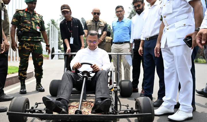 কলেজছাত্র রিজয়ান রশীদের তৈরি গো-কার্ট (রেসিং কার) পরিদর্শন করেছেন তারেক রহমান। এ সময় শিক্ষার্থীর উদ্ভাবনকে উৎসাহ দিতে তিনি নিজেই গো-কার্টটি চালিয়ে দেখান।