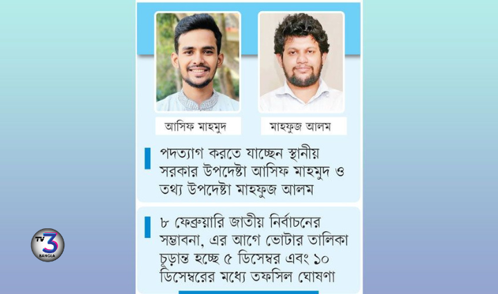 দুই উপদেষ্টার পদত্যাগ আগামী সপ্তাহেঃ নির্বাচনে অংশ নেওয়ার প্রস্তুতি