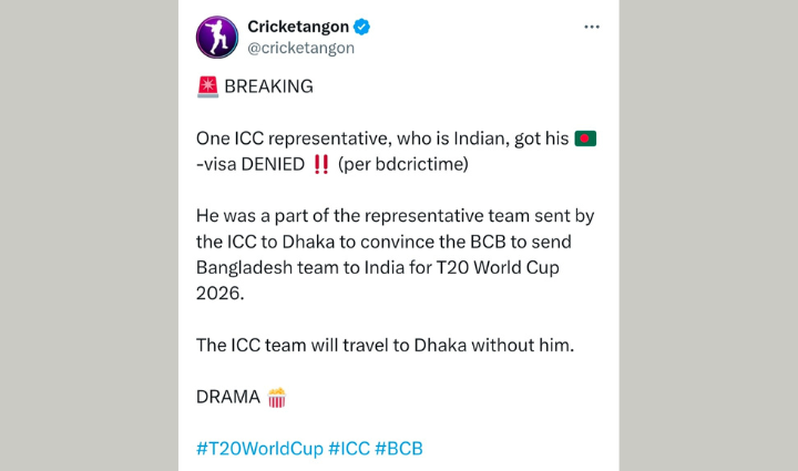 এই সফর ঘিরে নতুন জটিলতা সামনে এসেছে। আইসিসির প্রতিনিধি দলে থাকা একজন ভারতীয় নাগরিককে বাংলাদেশ ভিসা দেয়নি। bdcrictime-এর তথ্য অনুযায়ী, ভিসা না পাওয়ায় সংশ্লিষ্ট প্রতিনিধি ঢাকায় আসতে পারছেন না। তাকে বাদ দিয়েই আইসিসির প্রতিনিধি দল বাংলাদেশ সফর করছে।