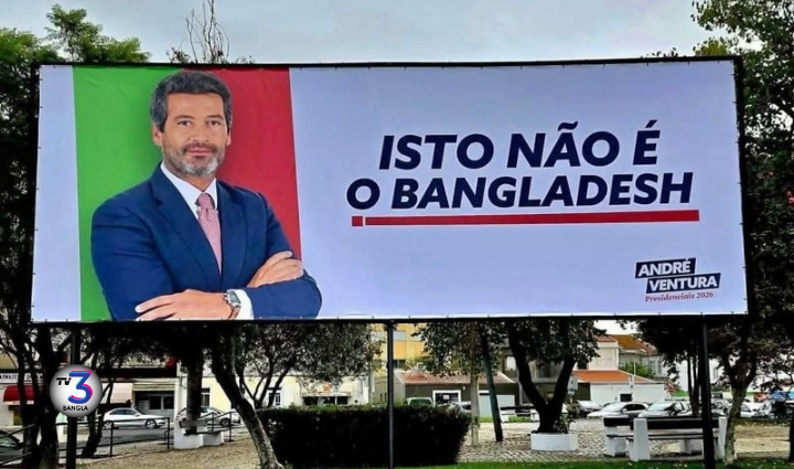 পর্তুগালের মন্তিজো (Montijo) শহরের একটি বাসস্টপের পাশে ঝুলানো একটি রাজনৈতিক বিলবোর্ডকে ঘিরে তীব্র সমালোচনার ঝড় উঠেছে স্থানীয় ও প্রবাসী মহলে। বিলবোর্ডটিতে দেশটির ডানপন্থী রাজনৈতিক দল ‘শেগা’ (Chega)-এর নেতা আন্দ্রে ভেনচুরার ছবি ব্যবহার করে বড় অক্ষরে লেখা হয়েছে— “Isto não é Bangladesh”। বাংলায় যার অর্থ— “এটা বাংলাদেশ নয়।”
